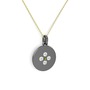 Peridot ve pırlanta 925 ayar siyah rodyum kaplama gümüş kolye (0.44 karat, 40 cm altın rolo zincir)