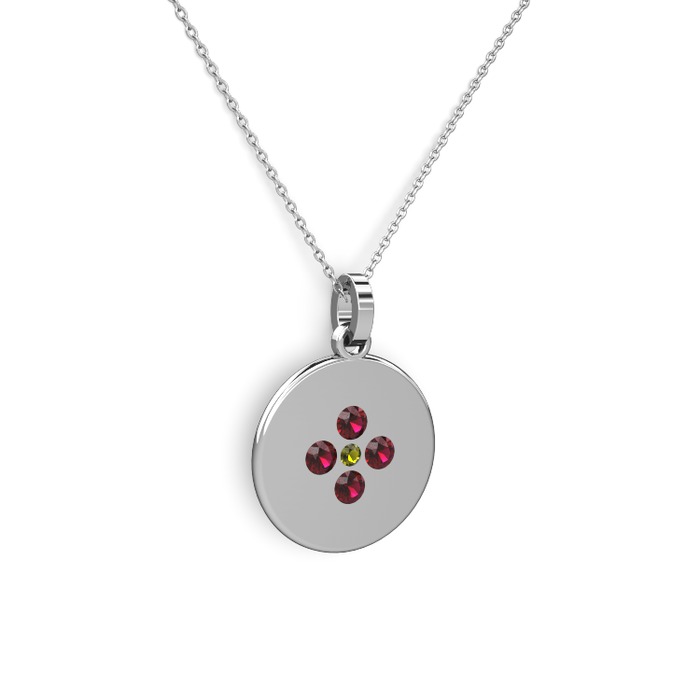Peridot ve rodolit garnet 18 ayar beyaz altın kolye (40 cm beyaz altın rolo zincir)