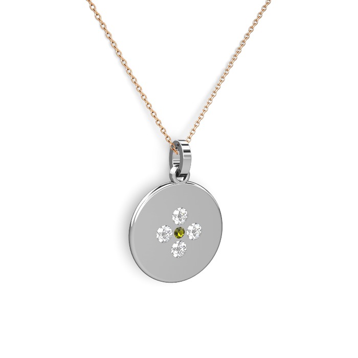 Peridot ve swarovski 925 ayar gümüş kolye (40 cm rose altın rolo zincir)