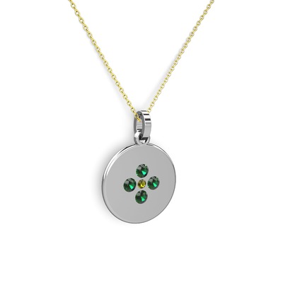 Peridot ve yeşil kuvars 18 ayar beyaz altın kolye (40 cm altın rolo zincir)