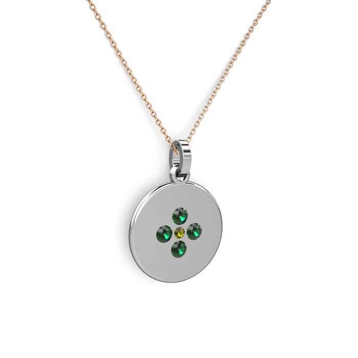 Peridot ve yeşil kuvars 8 ayar beyaz altın kolye (40 cm gümüş rolo zincir)
