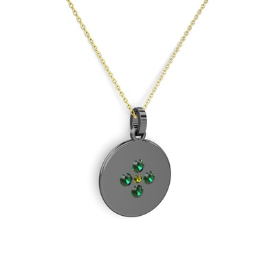 Peridot ve yeşil kuvars 925 ayar siyah rodyum kaplama gümüş kolye (40 cm altın rolo zincir)