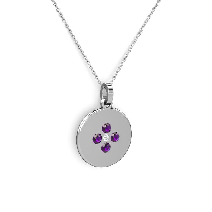 Pırlanta ve ametist 14 ayar beyaz altın kolye (0.036 karat, 40 cm beyaz altın rolo zincir)