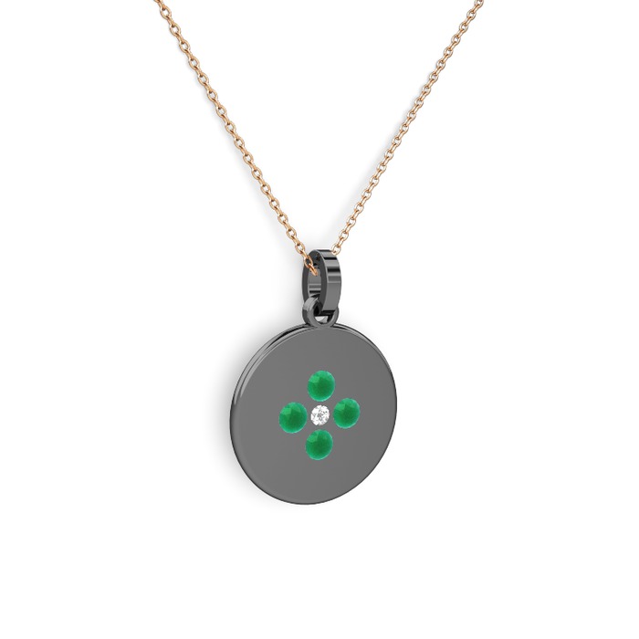 Pırlanta ve kök zümrüt 925 ayar siyah rodyum kaplama gümüş kolye (0.036 karat, 40 cm gümüş rolo zincir)