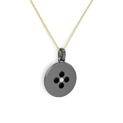 Pırlanta ve siyah zirkon 925 ayar siyah rodyum kaplama gümüş kolye (0.036 karat, 40 cm altın rolo zincir)