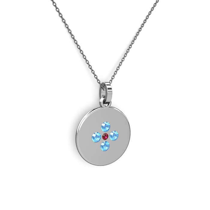 Rodolit garnet ve akuamarin 18 ayar beyaz altın kolye (40 cm gümüş rolo zincir)