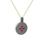 Rodolit garnet ve kök yakut 925 ayar siyah rodyum kaplama gümüş kolye (40 cm altın rolo zincir)