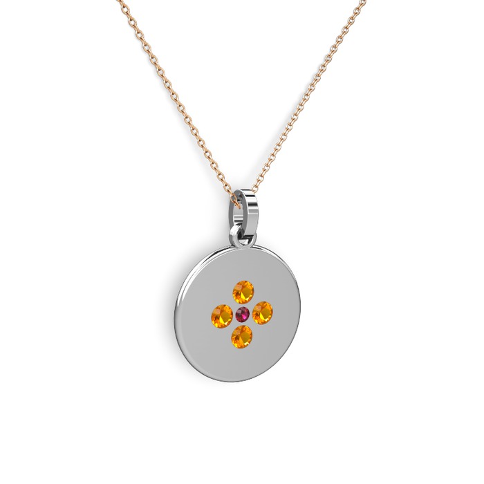 Rodolit garnet ve sitrin 925 ayar gümüş kolye (40 cm gümüş rolo zincir)