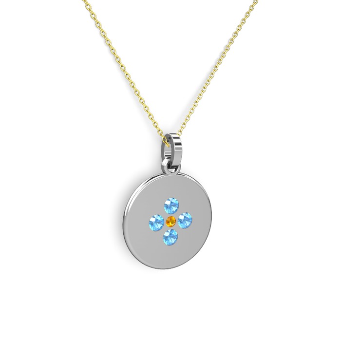 Sitrin ve akuamarin 18 ayar beyaz altın kolye (40 cm altın rolo zincir)