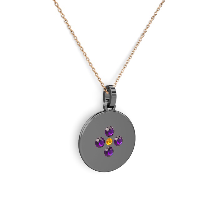Sitrin ve ametist 925 ayar siyah rodyum kaplama gümüş kolye (40 cm gümüş rolo zincir)