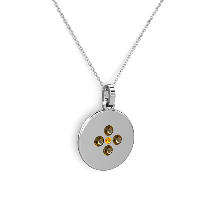 Sitrin ve dumanlı kuvars 18 ayar beyaz altın kolye (40 cm beyaz altın rolo zincir)