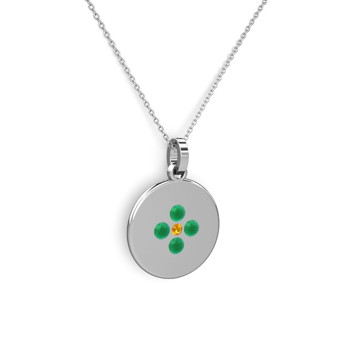 Sitrin ve kök zümrüt 18 ayar beyaz altın kolye (40 cm beyaz altın rolo zincir)