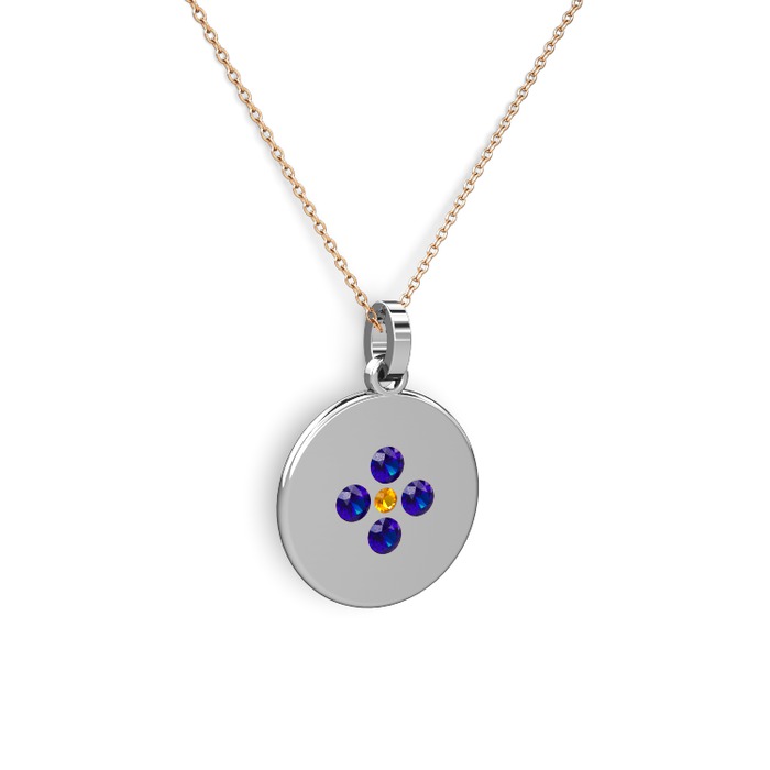 Sitrin ve lab safir 18 ayar beyaz altın kolye (40 cm rose altın rolo zincir)