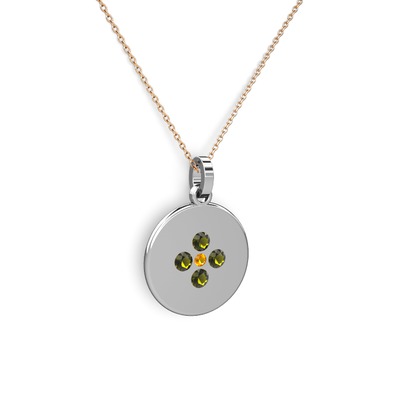 Sitrin ve peridot 18 ayar beyaz altın kolye (40 cm rose altın rolo zincir)