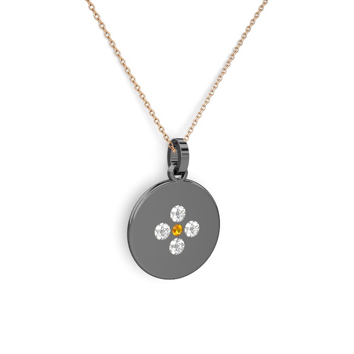 Sitrin ve pırlanta 925 ayar siyah rodyum kaplama gümüş kolye (0.44 karat, 40 cm gümüş rolo zincir)
