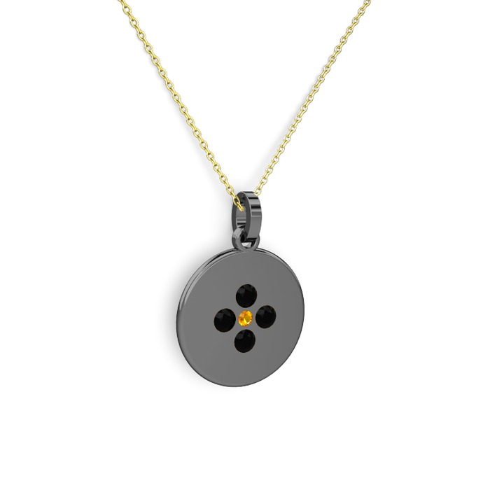 Sitrin ve siyah zirkon 925 ayar siyah rodyum kaplama gümüş kolye (40 cm gümüş rolo zincir)