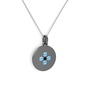 Siyah zirkon ve akuamarin 925 ayar siyah rodyum kaplama gümüş kolye (40 cm beyaz altın rolo zincir)