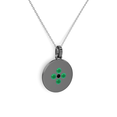 Siyah zirkon ve kök zümrüt 925 ayar siyah rodyum kaplama gümüş kolye (40 cm beyaz altın rolo zincir)