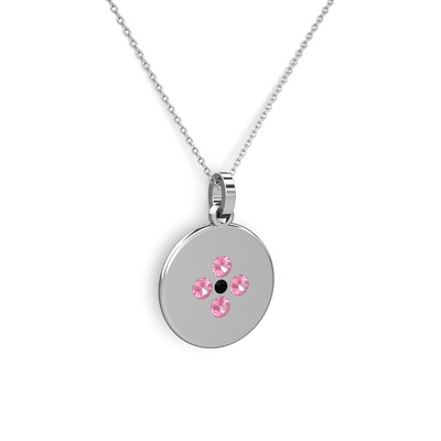 Siyah zirkon ve pembe kuvars 18 ayar beyaz altın kolye (40 cm beyaz altın rolo zincir)