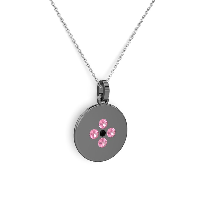 Siyah zirkon ve pembe kuvars 925 ayar siyah rodyum kaplama gümüş kolye (40 cm beyaz altın rolo zincir)