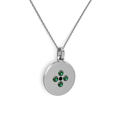 Siyah zirkon ve yeşil kuvars 14 ayar beyaz altın kolye (40 cm gümüş rolo zincir)