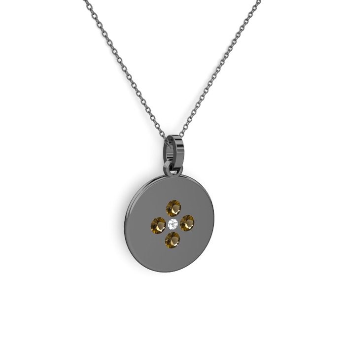 Swarovski ve dumanlı kuvars 925 ayar siyah rodyum kaplama gümüş kolye (40 cm gümüş rolo zincir)