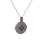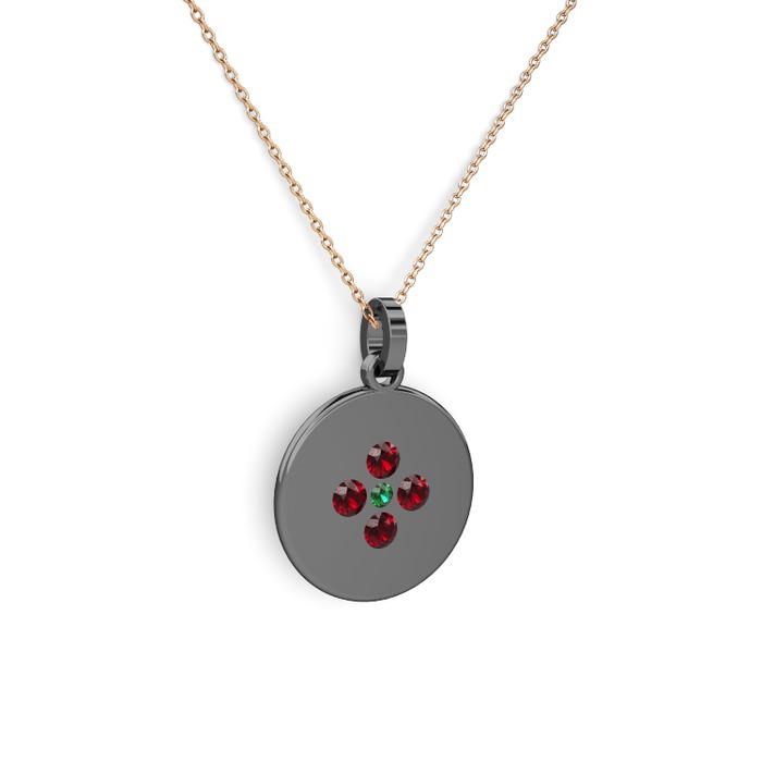 Yeşil kuvars ve garnet 925 ayar siyah rodyum kaplama gümüş kolye (40 cm rose altın rolo zincir)