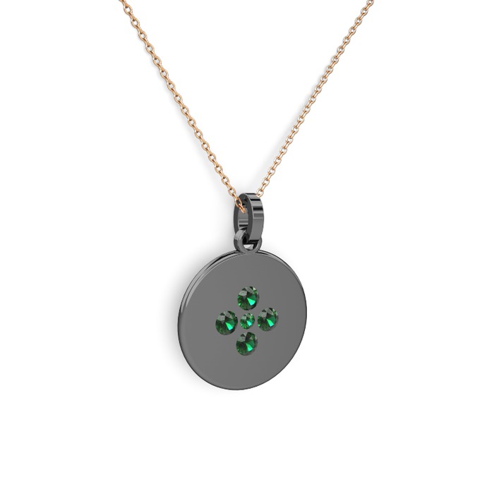 Yeşil kuvars 925 ayar siyah rodyum kaplama gümüş kolye (40 cm rose altın rolo zincir)