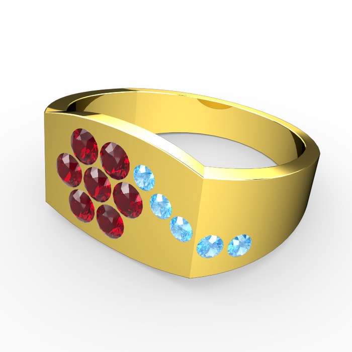 Akuamarin ve garnet 925 ayar altın kaplama gümüş yüzük