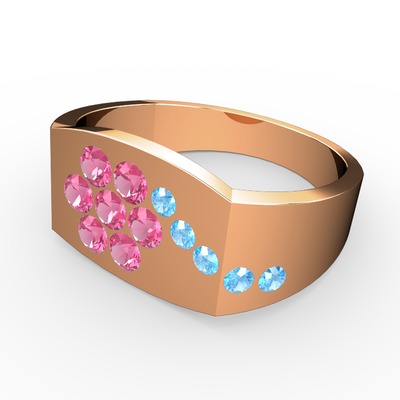 Akuamarin ve pembe kuvars 8 ayar rose altın yüzük