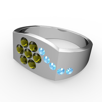 Akuamarin ve peridot 8 ayar beyaz altın yüzük