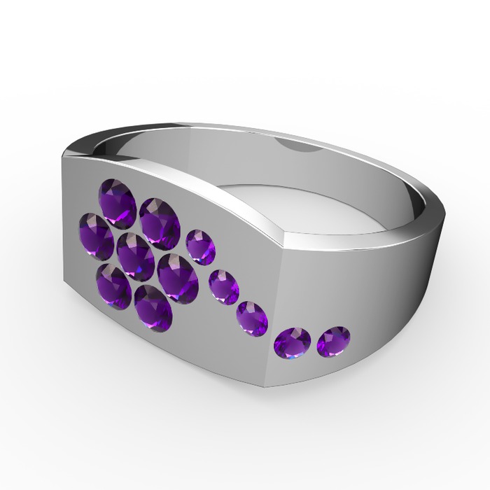 Ametist 18 ayar beyaz altın yüzük
