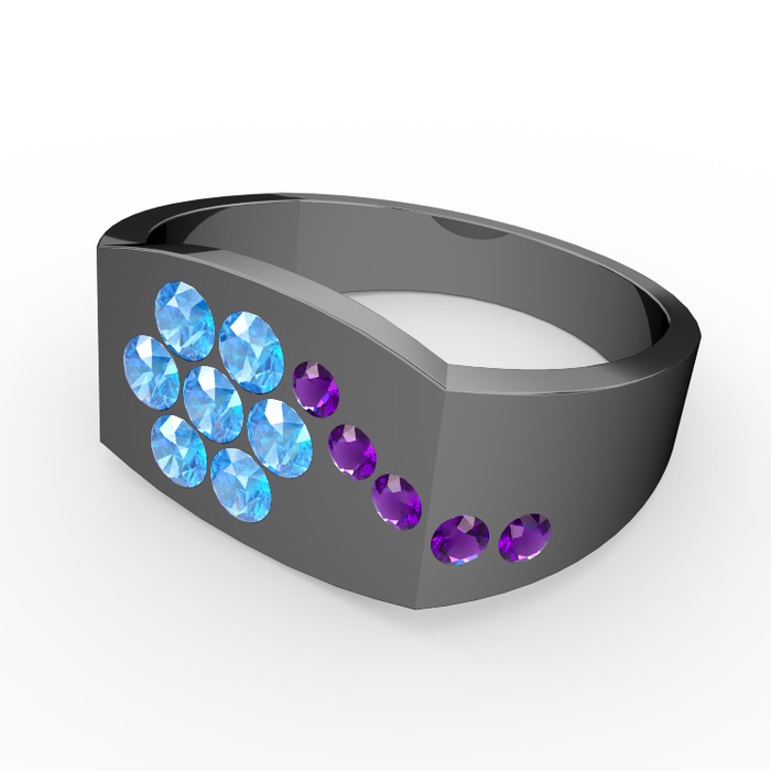 Ametist ve akuamarin 925 ayar siyah rodyum kaplama gümüş yüzük