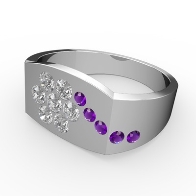 Ametist ve beyaz zirkon 8 ayar beyaz altın yüzük