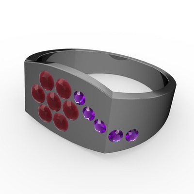 Ametist ve kök yakut 925 ayar siyah rodyum kaplama gümüş yüzük