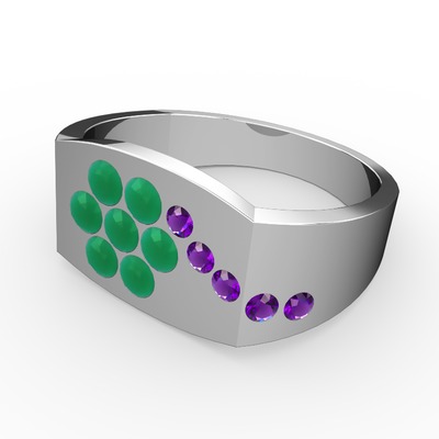 Ametist ve kök zümrüt 18 ayar beyaz altın yüzük