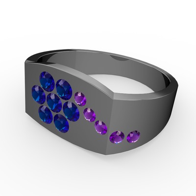 Ametist ve lab safir 925 ayar siyah rodyum kaplama gümüş yüzük