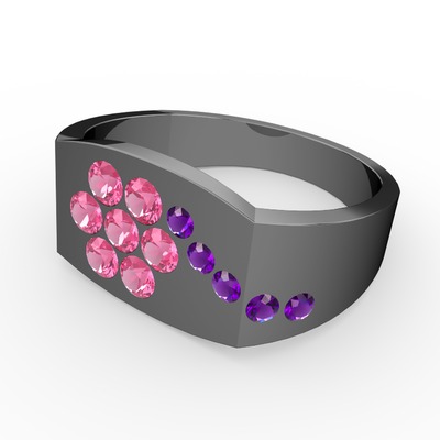 Ametist ve pembe kuvars 925 ayar siyah rodyum kaplama gümüş yüzük