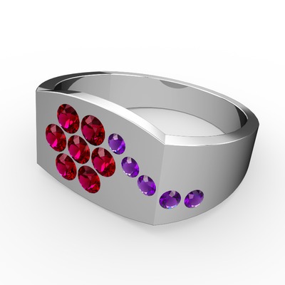 Ametist ve rodolit garnet 18 ayar beyaz altın yüzük