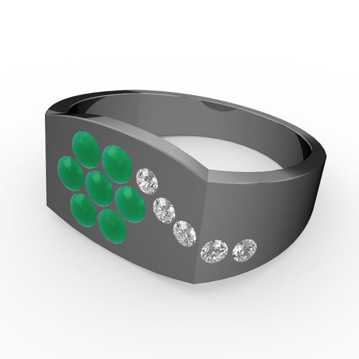 Beyaz zirkon ve kök zümrüt 925 ayar siyah rodyum kaplama gümüş yüzük