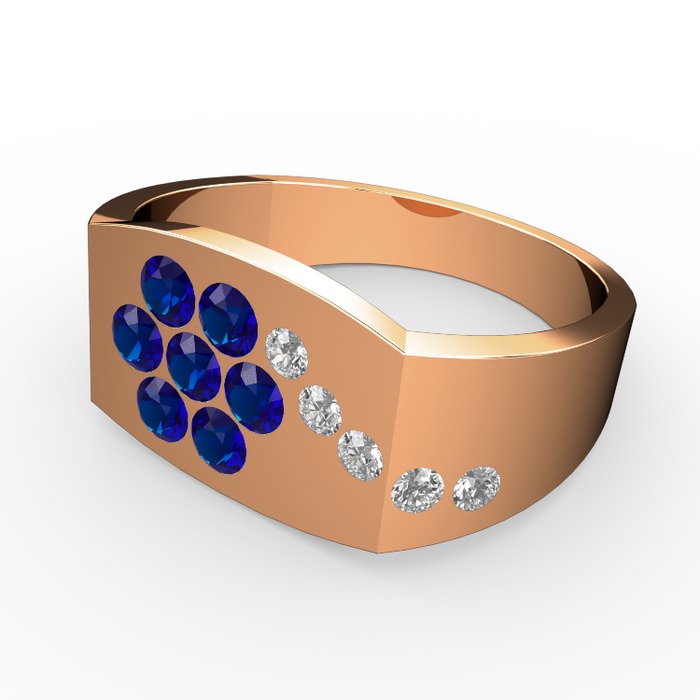 Beyaz zirkon ve lab safir 18 ayar rose altın yüzük