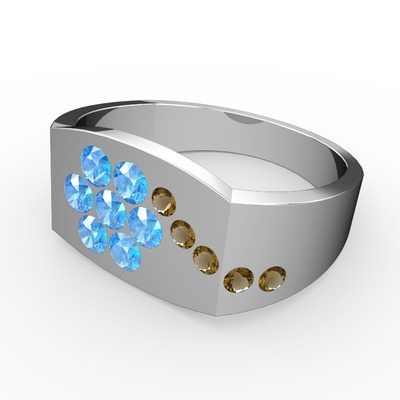 Dumanlı kuvars ve akuamarin 8 ayar beyaz altın yüzük