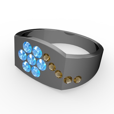 Dumanlı kuvars ve akuamarin 925 ayar siyah rodyum kaplama gümüş yüzük