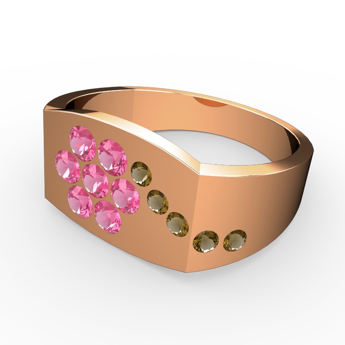Dumanlı kuvars ve pembe kuvars 925 ayar rose altın kaplama gümüş yüzük