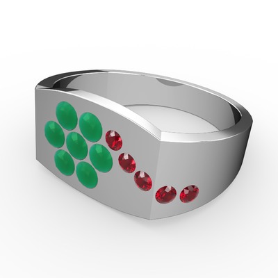 Garnet ve kök zümrüt 925 ayar gümüş yüzük