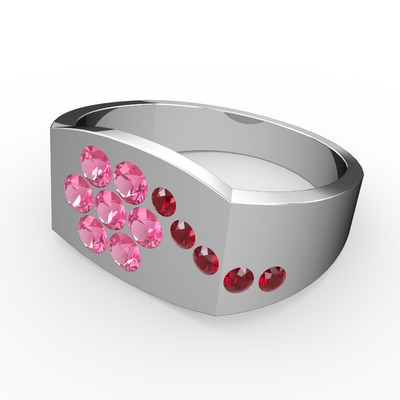 Garnet ve pembe kuvars 925 ayar gümüş yüzük