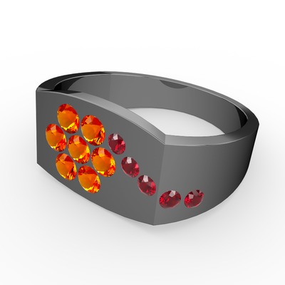 Garnet ve sitrin 925 ayar siyah rodyum kaplama gümüş yüzük