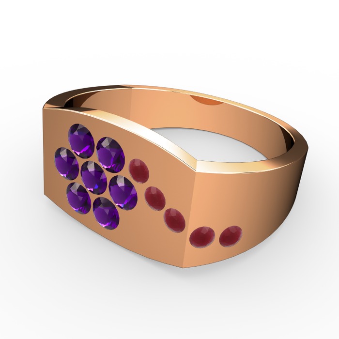 Kök yakut ve ametist 925 ayar rose altın kaplama gümüş yüzük