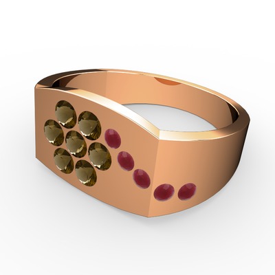 Kök yakut ve dumanlı kuvars 14 ayar rose altın yüzük
