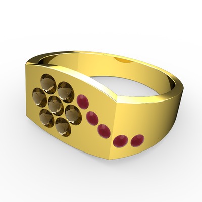 Kök yakut ve dumanlı kuvars 8 ayar altın yüzük